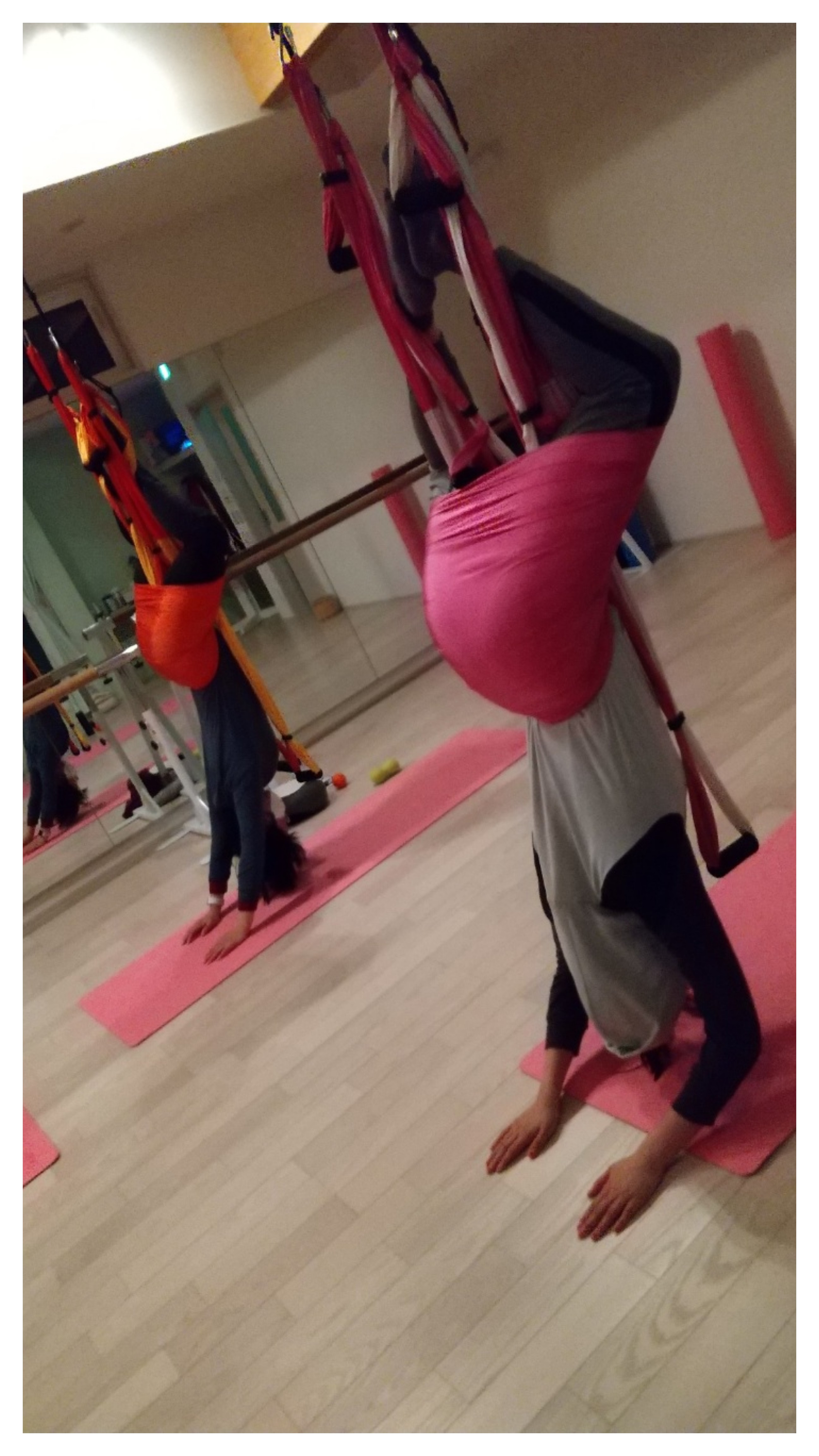 産後や加齢による骨盤底筋群・それに伴う内臓下垂など逆さまになる事で改善+若返り(こうもりのポーズ)身体が喜ぶシルクサスペンション
